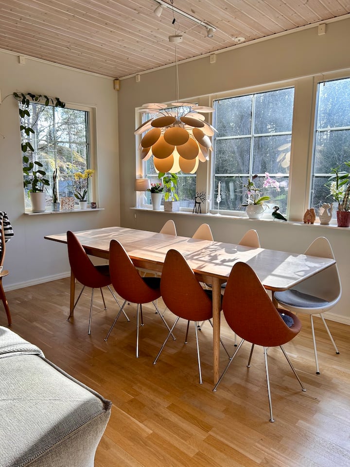 Живеем на юг от Стокхолм, в началото на архипелага в Тиресьо Странд. В овесената каша виждаме природата да се измества през сезоните. Живеем в къща, построена на 2000 край морето. Оттук можете да се насладите на всичко, което архипелагът може да предложи. Замъкът Тиресо и природният резерват са на един хвърлей разстояние. Плажът и клубът за лодки са на 100 метра от парцела.