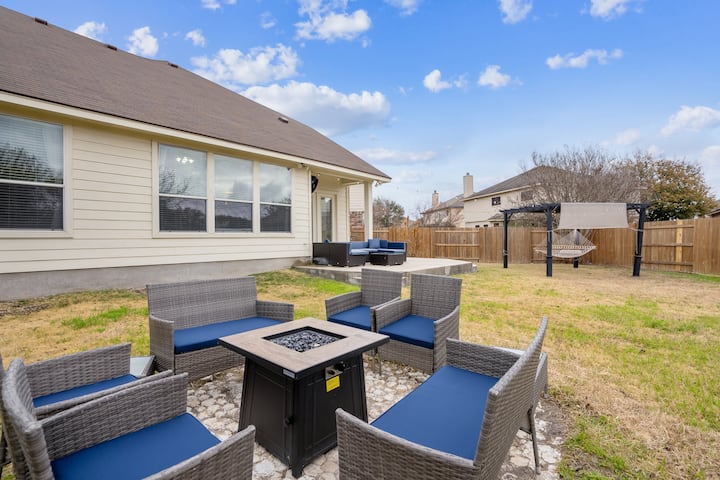 Perfect Trim: 3BR Cibolo с огнище, споделен басейн
