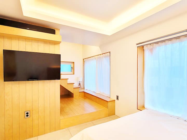 - Подходящи за семейства ваканционни жилища под наем в района на Чеджу