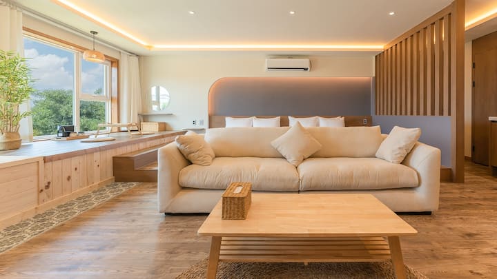 Тип стая: Hinokitang + Семейно легло (Queen + Queen) + 2 бани (1 душ) + Кухня / 16 Pyeong Studio