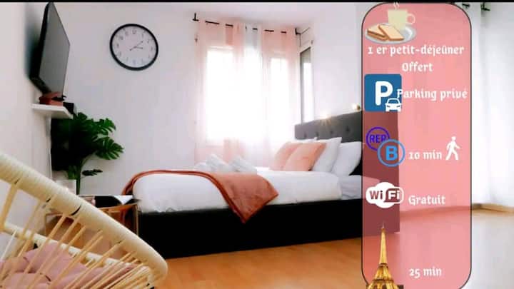 красиво тихо студио + частен паркинг близо до Париж