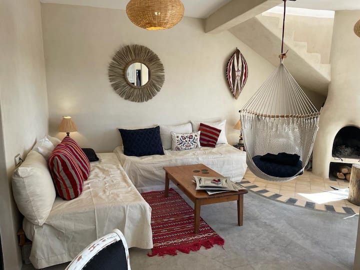 Аз съм дете на село Уасейн и бях приспиван от вятъра на Кейп Сим. Живея в риболов и се стремя към сърфирането и океана! Наскоро със съпругата ми Хадиджа и двете ми деца, Юсеф и Нуайла, решихме да споделим мястото си на живот и се радваме да посрещнем гости от всички сфери на живота в двете ни къщи: малка къща, напълно независима за 2 до 4 души (Дар Юсеф, кръстена на сина ми) и 3 стаи за гости, включително голям апартамент с всекидневна (апартамент Нуха, кръстен на дъщеря ми), стаите Tafokt и Ayour, на терасата на главната ни къща. Така че добре дошли на всички нас, ние се радваме да ви посрещнем в нашия малък рай.