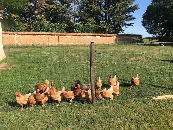 Нашите животни: 5 овце, понякога свободни, 2 кози, 15 пилета, 1 куче (Роксан),което ще се радва да ви придружи по време на разходките ви, куче гранично коли ( синьо) твърде сладко и сладко 17 - годишно коте.