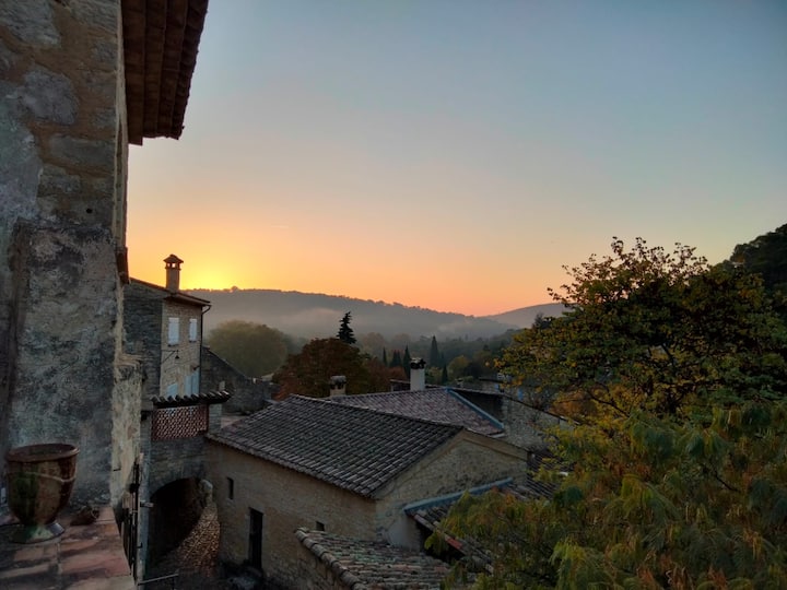 Цялото място: прилепена къща (La Roque-sur-Cèze, Франция)