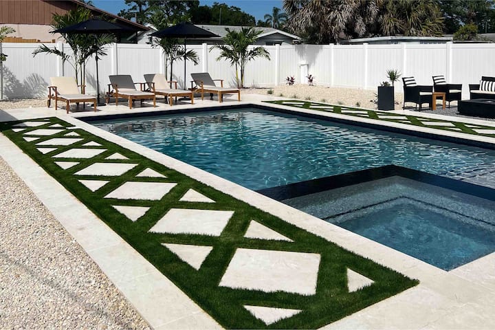 Отделен басейн със солена вода и спа на 1 миля от плажа