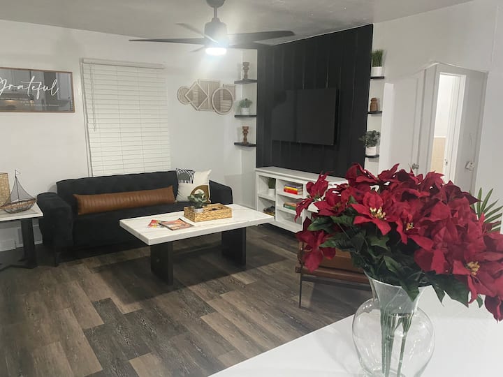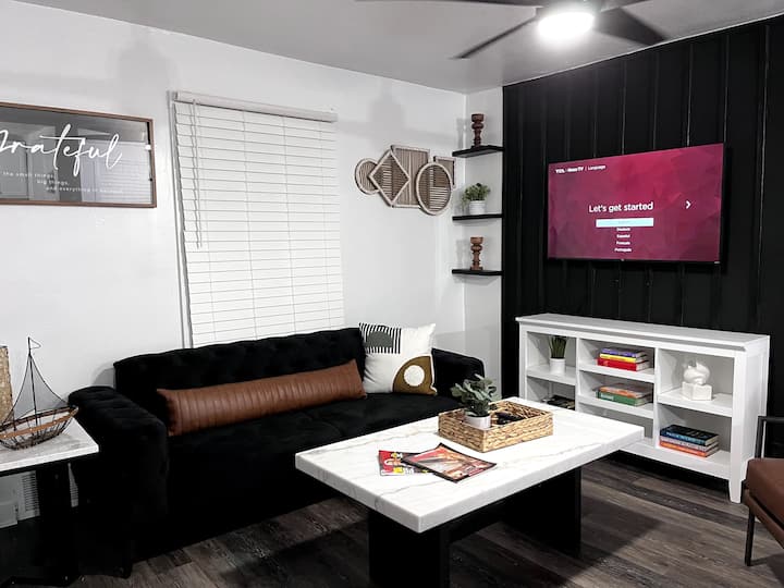 Всички съвременни удобства на най - добрите жилища под наем като пералня, сушилня, вход без ключ, уреди от неръждаема стомана и т.н., както и елегантна класическа естетика, която включва ръчно подбрани мебели и подредени от професионални декоратори. 3 спални, 2 от които са основни спални, украсени с елегантен декор и акценти правят тази къща не само изключително удобна, но и уютна и приятна за окото и оборудвана с лични работни пространства за професионалиста, който се нуждае от място за конференция! Има толкова много неща, които може да се каже за другите помещения, както и за модерната баня, всекидневната с истинска италианска кожена секция и много други, но това е къща, която можете да визуализирате чрез описание, да оценявате чрез снимки и да се наслаждавате чрез изживяване от първа ръка! Резервирайте сега, докато свободните места са свободни!