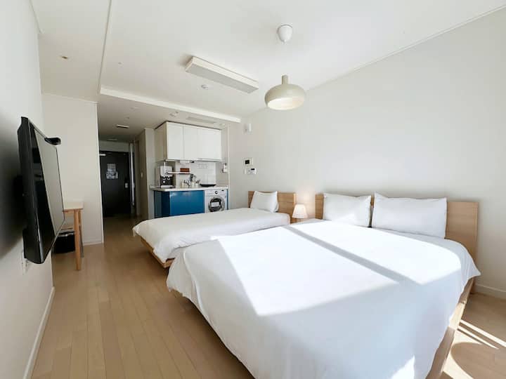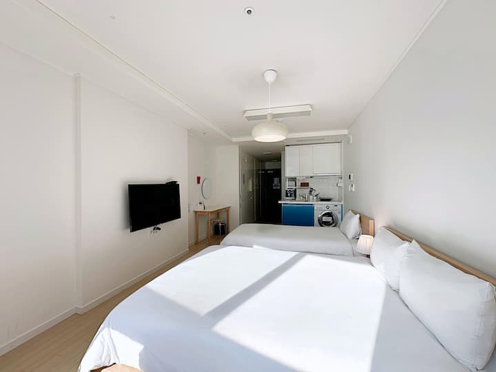 | S08 | # изглед към морето # 1 минута пеша до плажа Haeundae # влак до плажа Mipo # Netflix # възможност за готвене # уютно # пътуване със семейството или приятели