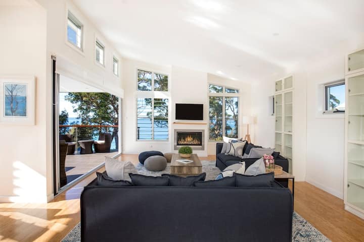 Изгледи: Изглед към водата от основната всекидневна и предната палуба, филтрирана гледка от други стаи в къщата