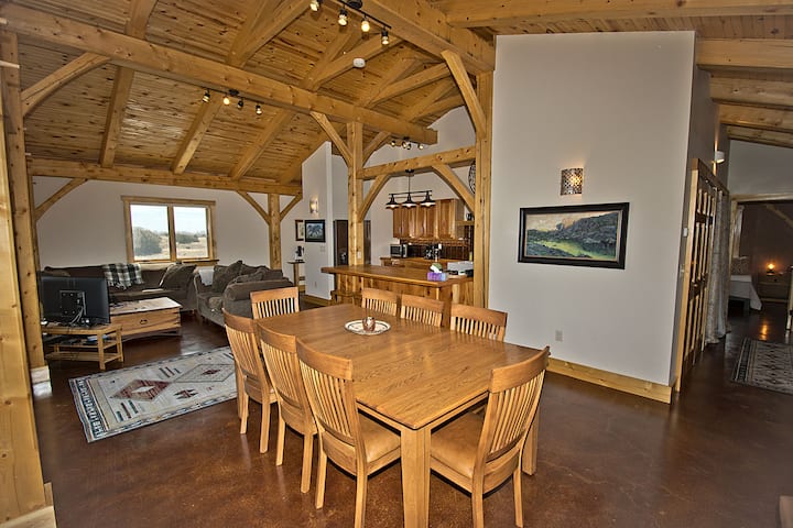 Къщата е разположена на осем акра хълмиста и открита земя, добре разположена в основата на върховете. Това е чудесна възможност за фотография и наблюдение на птици. Ще се насладите на игри в трапезарията, гледане на филми и почивка на открито; добре заредени с игри и филми. Кухненският островен бар осигурява страхотни разговори и добро работно пространство за тези, които работят дистанционно. Всяка спалня и баня са от противоположните страни на къщата, което я прави идеална комбинация от уединение и място за събиране. Този страхотен дом е подходящ за кучета, така че доведете косматия си приятел и излезте да разгледате!
