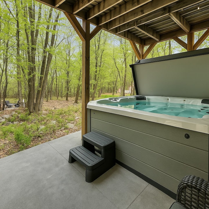 Избягайте в планините Поконо и открийте Мечата скала на бреза! Това стилно място за отдих, подходящо за кучета, се отличава с отлично местоположение, само на няколко минути от склоновете и езерото. Backing State Game Lands Това е 4 спални, 2,5 бани и модерен отворен план на етажа, това безупречно пространство предлага луксозно обзавеждане и завладяващо планинско настроение. Пийте сутрешното си кафе на терасата и се потопете в природата. Вашата възможност за перфектна комбинация от комфорт и природна красота