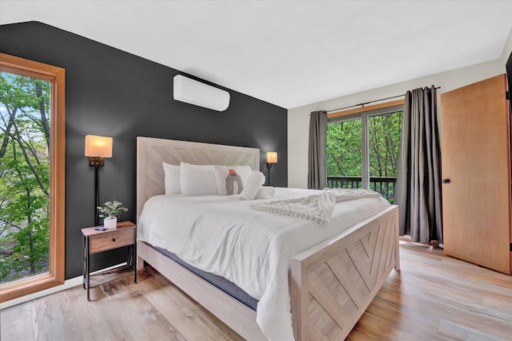 Добре дошли в Bear Rock на Бърч, най - доброто ви убежище в планината Поконо! Този чист, модерен и подходящ за домашни любимци Airbnb предлага отворен план на пода с 4 легла/2,5 бани с луксозно обзавеждане и модерно планинско настроение, което гарантира приятен престой. Започнете сутрините си на просторната палуба, наслаждавайки се на кафето си сред спокойствието на Поконос.