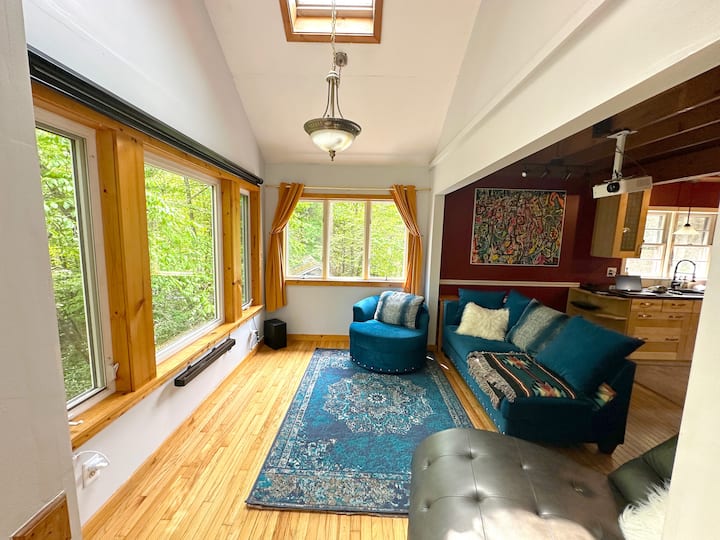 Laurel Run Retreat е вълшебен дом, който плава сред дърветата в това горско скривалище. Имотът е заобиколен от зеленина през лятото, изпълнен с ярки цветове през есента и е красив в зимния сняг. През цялото време звуците на Laurel Run Creek серенади, осигуряващи успокояващ естествен звуков пейзаж. Тази чудесна обстановка е идеална за стимулиране на потока на творчество или просто за почивка с приятели и семейство.