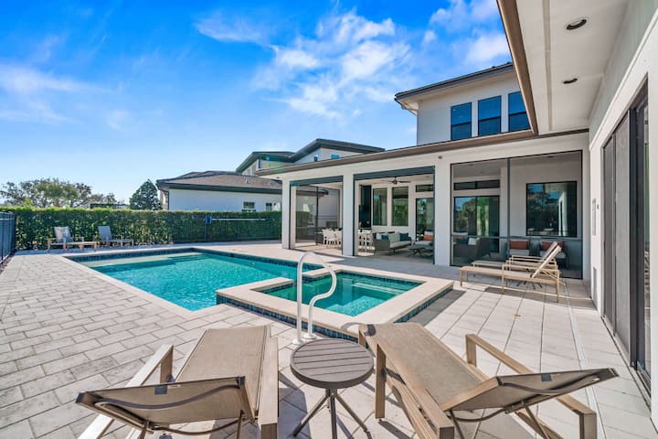 Добре дошли в Liberty Brisa - елегантен луксозен дом с 5 спални и 5 бани в престижния курорт Реюнион. Разположен на площ от 4123 квадратни фута, този зашеметяващ имот е удобен за настаняване на до 14 гости, което го прави идеален за семейства, групи или за тези, които търсят изискана почивка. Със своя луксозен дизайн, модерни удобства и внимателно подбрани характеристики, Liberty Brisa подготвя сцената за незабравима ваканция.