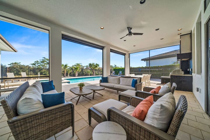 Излезте навън в красиво проектираната външна зона. Лятната кухня, оборудвана с всичко необходимо за хранене на открито, прави храната на открито лесна. Просторният вътрешен двор разполага с достатъчно места за отдих и хранене на слънце, създавайки идеалното място да се насладите на слънцето във Флорида или да се отпуснете под звездите. Със своя стилен дизайн и спокойна обстановка външното пространство е истинско продължение на луксозния интериор на дома.