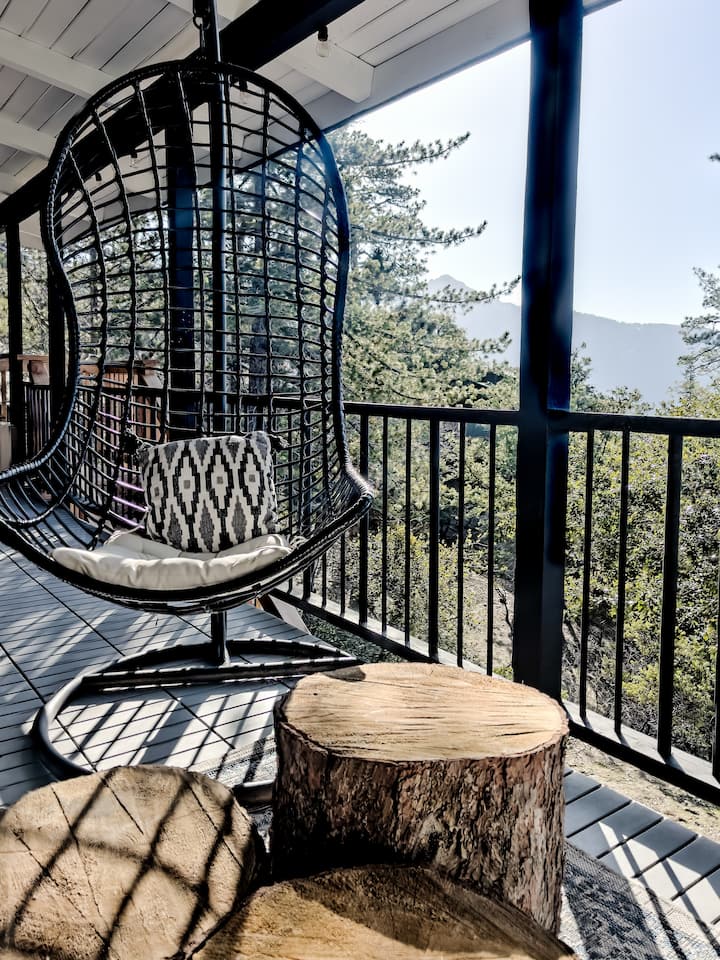 Дървена колиба Idyllwild, хидромасажна вана, огнище, изглед към планината