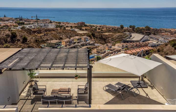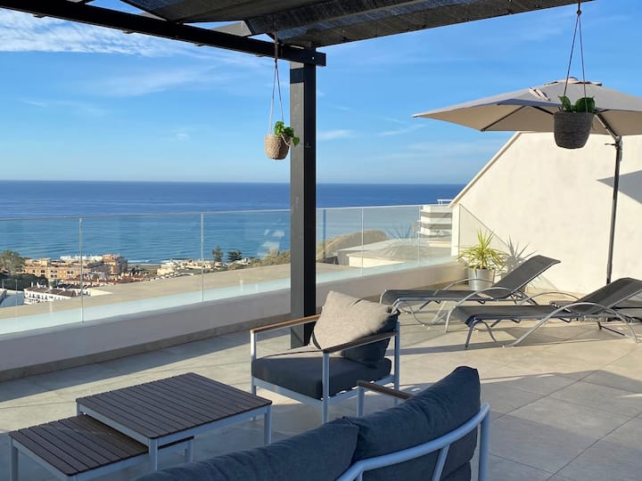 Пентхаус с тераса на покрива и изглед към морето близо до плажа