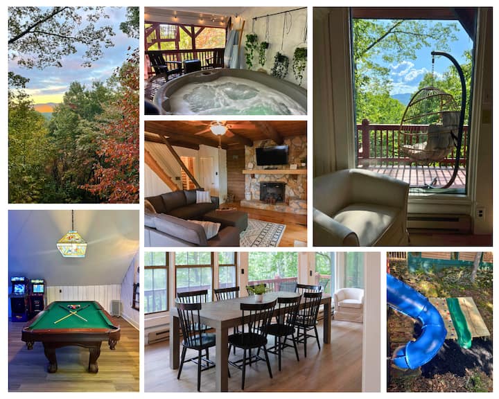 Шикозна хижа с изглед, игрална зала, хидромасажна вана и пързалка!