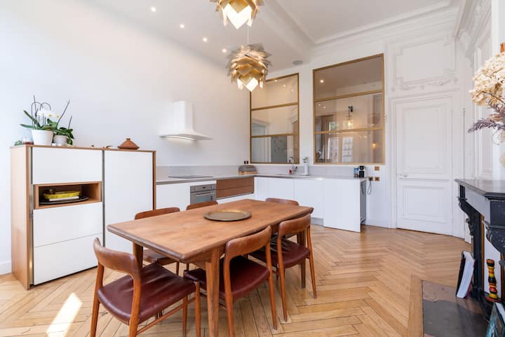 Апартаментът съчетава скандинавски декорации с ярки, топли цветове за уютна атмосфера. Но истинският шедьовър е отвън, нарича се гледката. Трябва да се каже, че от многото прозорци на апартамента светлинното шоу е постоянно. Те променят и рисуват различни цветове на Fourvière и флорентинските охра на стария Лион по всяко време на деня.
