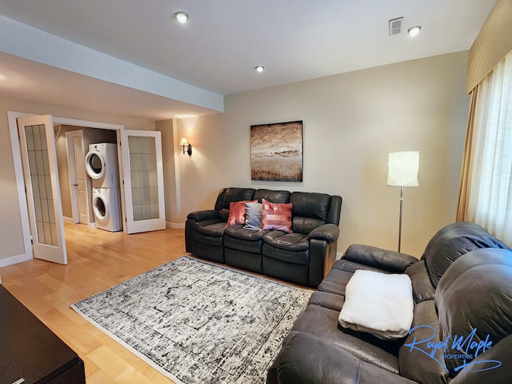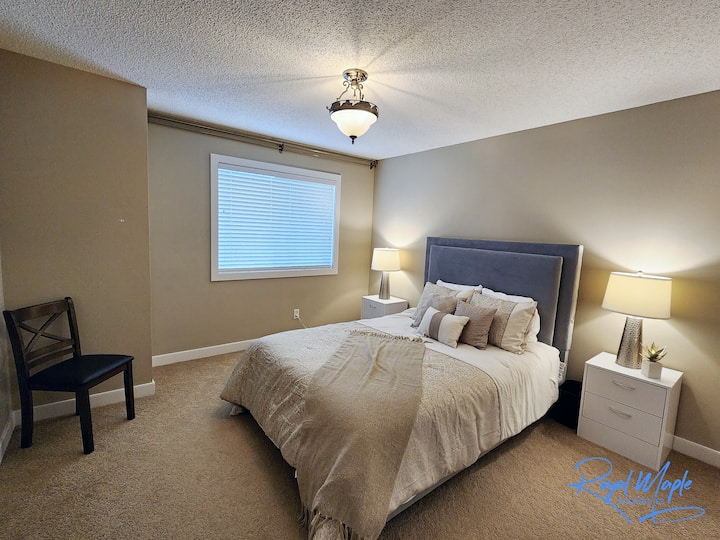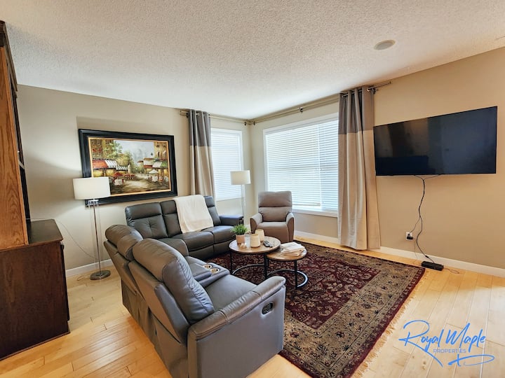 Добре дошли в модерното семейно бягство 4BR 3.5Bath, сгушено в спокойния район на Роки Ридж в северозападната част на Калгари, Албърта. Избягайте от тълпите в големия град и се насладете на прекрасната атмосфера от частния балкон, докато сте само на 20 минути от оживения център, ресторантите, фермерския пазар, зоопарка за домашни любимци и много атракции.