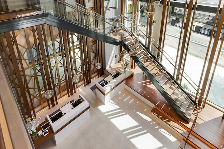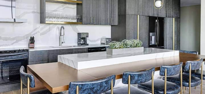 Директно в центъра на града и с изглед към Олимпийския парк Centennial, това президентско помещение с 3 спални може да побере до 12 гости с чудесни удобства и достъп до всички удобства в курорта, включително басейн на покрива, заведения за хранене и бар.