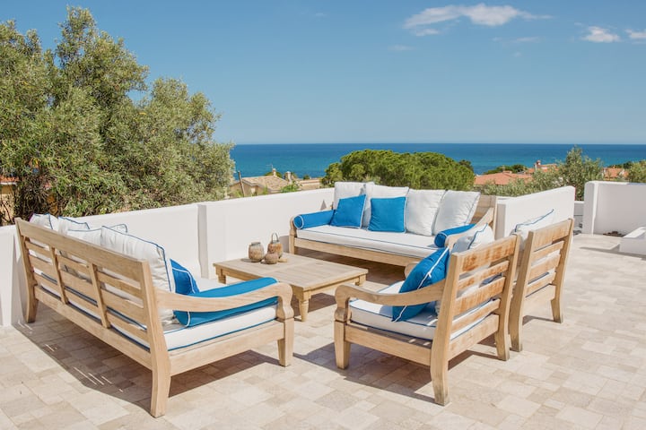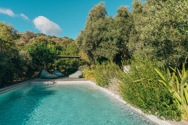 Скрита в края на тиха улица, заобиколена от маквис и с изглед към морето, вилата предлага панорамен покрив и басейн с изглед към Средиземно море – идеалното място за отдих с любимите хора и изследване на автентична Сардиния без тълпи.