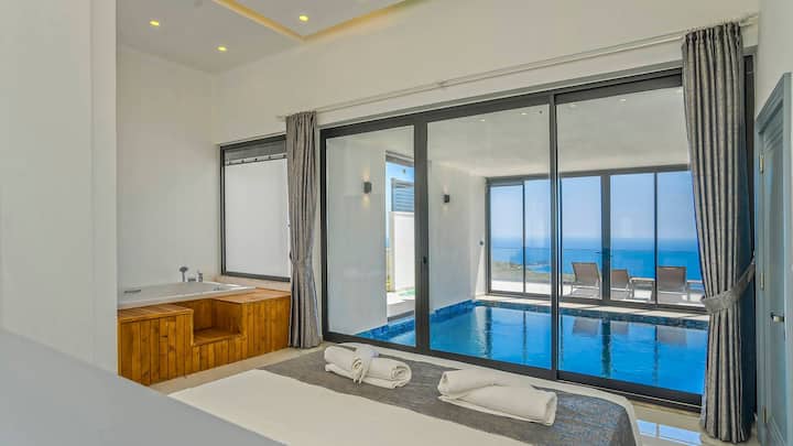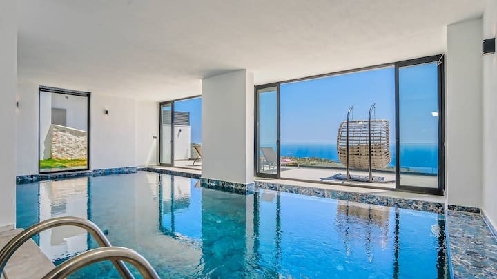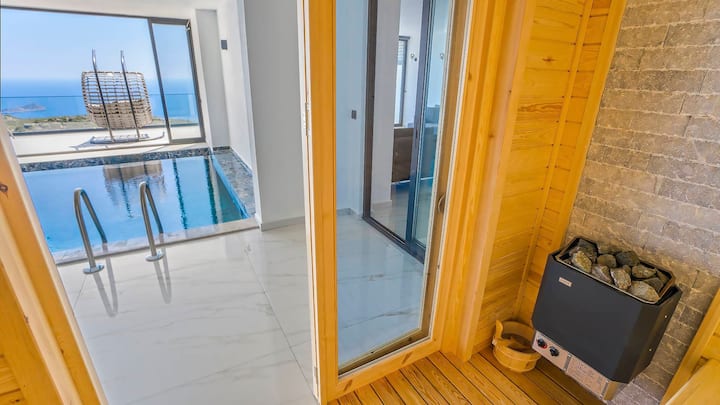 Закрит басейн с изглед към морето Сауна Вила Moonshine