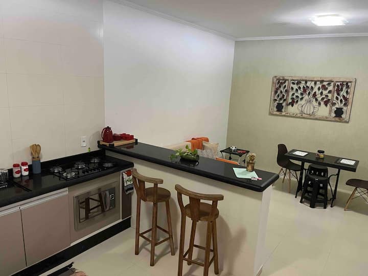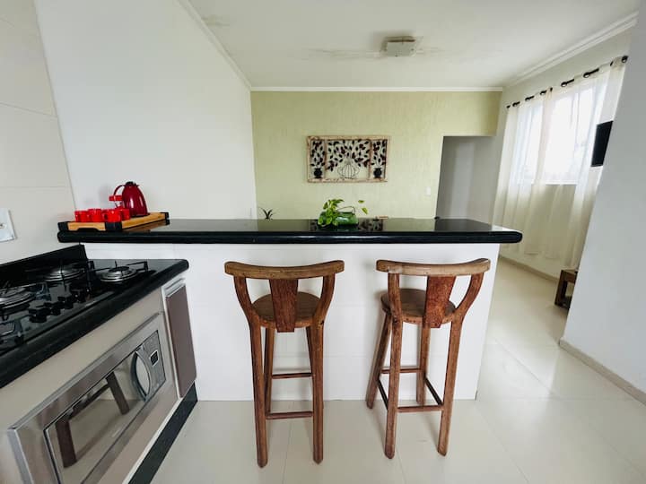 С 2 големи спални, легло, което, двойно и единично легло) стенни вентилатори и преносими, достатъчно американска кухня, много просторни стаи! голяма кухня с мраморен плот. Социална баня. Голяма стая с двоен разтегателен диван.