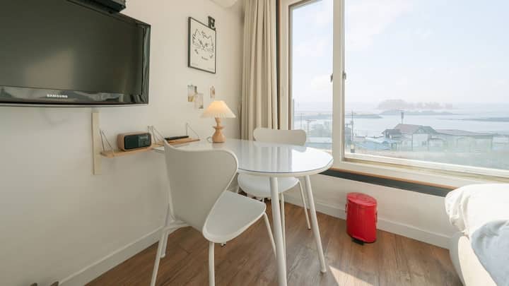Модерен E Deluxe с изглед към океана в Taean