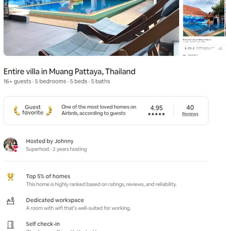 - Подходящи за семейства ваканционни жилища под наем в района на Pattaya