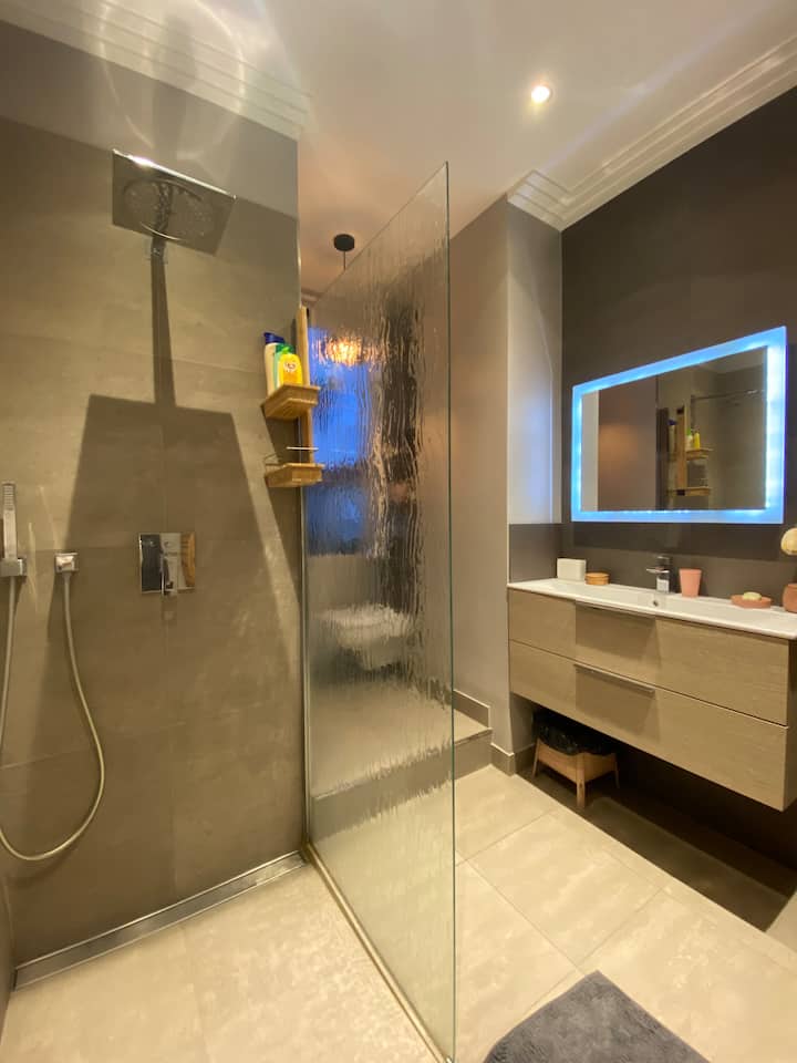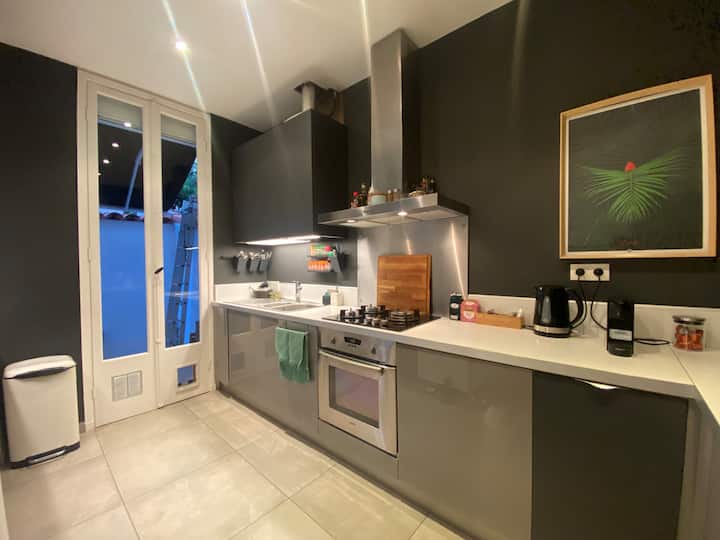 Дъщерите ми, аз и Шантили (котката ни) ще се радваме да ви посрещнем в нашия голям климатизиран семеен дом със спа: на 10 фута от морето, от центъра