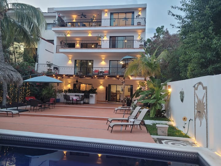 Вила Розамария е част от малка общност от само три вили🏡, което гарантира ексклузивна и спокойна атмосфера. Общият басейн е фокусна точка за релаксация 🏝️, заобиколен от просторен вътрешен двор с шезлонги 🌞, палапа за сянка 🌴, открити места за хранене 🍔 и зона за барбекю 🍖. Потопете се в освежаващите води на инфинити басейна🌊, попийте слънце 🌞 на шезлонг или се съберете с приятели и семейство за вкусно барбекю 🍗 – всичко това, докато се наслаждавате на зашеметяващата гледка към океана.