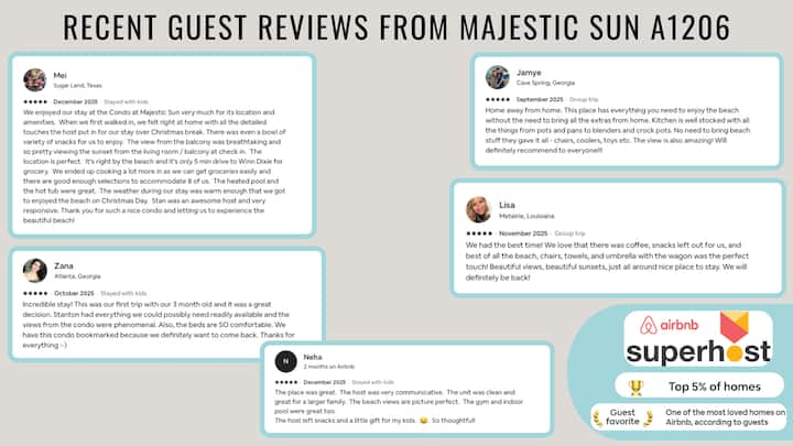 Majestic Sun е част от простора, Seascape Beach Resort с тонове басейни, голф игрище с 18 дупки, съоръжение за тенис/туршия, баскетболно игрище и 2000 – има толкова много неща за правене в Seascape! Majestic Sun се намира в Мирамар Бийч, който разполага с широки тротоари за разходки и колоездене, докато се наслаждавате на забележителности и звуци на залива, както и лесен достъп до всички заведения за хранене и вълнение, които Мирамар Бийч и Дестин могат да предложат!