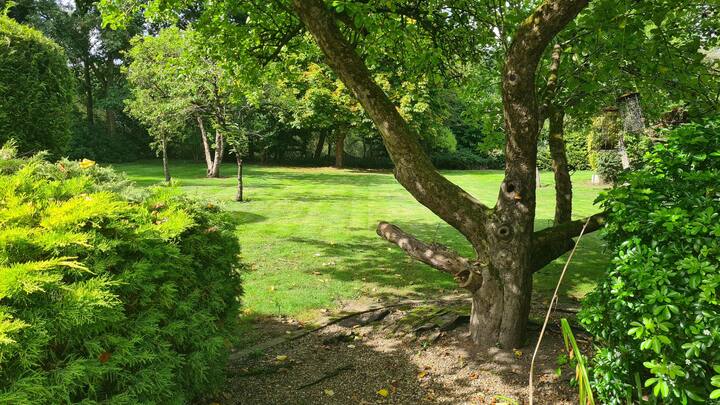Гледка към градина и езеро