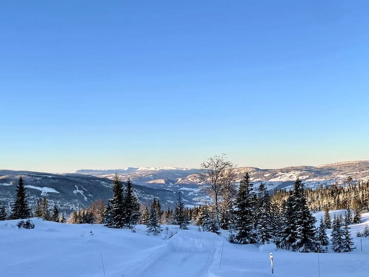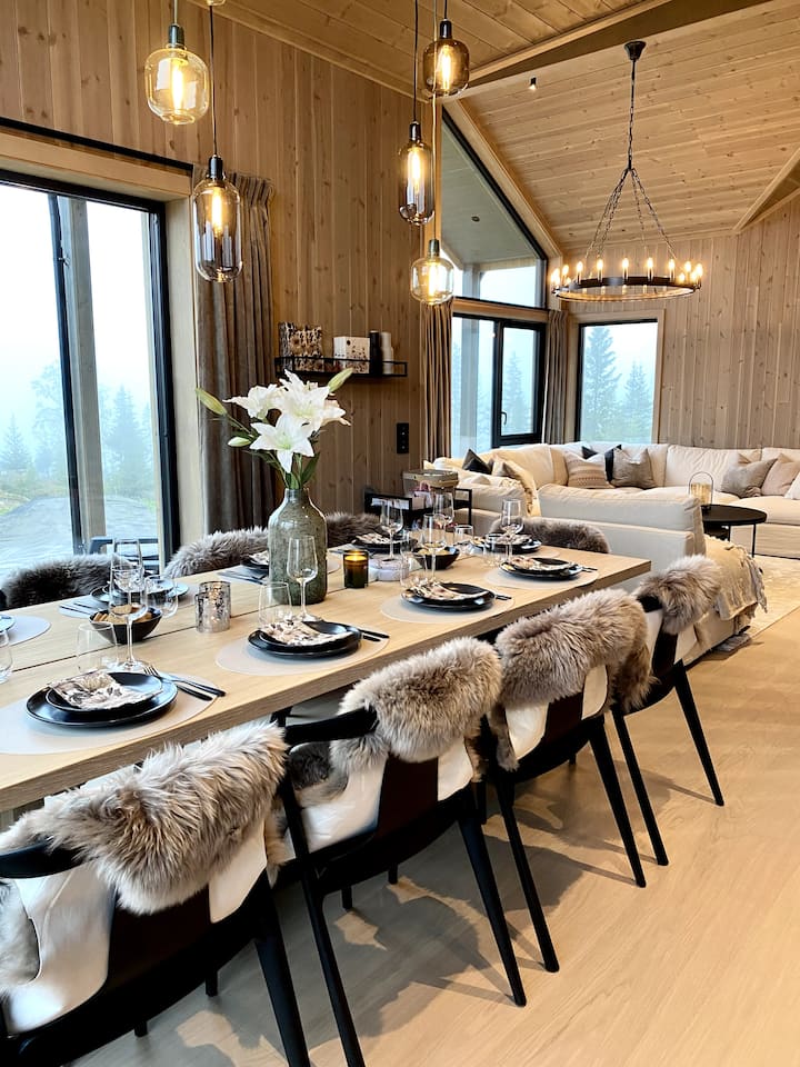 Голяма, просторна и светла всекидневна/трапезария. Просторна и социална кухня с място за няколко, които могат да готвят едновременно. Големи повърхности на прозорците с панорамни гледки към, наред с други неща, факела и Скикампен. Голям ъглов диван с два просторни разтегателни дивана. Трапезна маса с допълнително заплащане осигурява място за поне 12 души. Бебешко столче може да бъде взето назаем при поискване Голям хладилник и фризер в кухнята, както и фризер на сергия. Кухненските уреди, изброени по - долу. Фурна с камина, разположена между всекидневната и кухнята (изгарянето на дърва се заплаща от само себе си, а дървата се купуват в местен магазин на няколко минути разстояние).