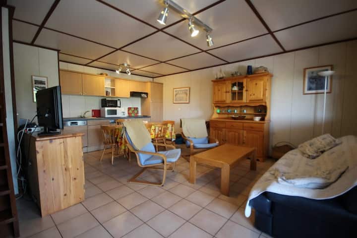 Къща, разположена в охраняемото имение Portes du Soleil, с 9 спални. На горния етаж, 3 спални (1 двойно легло, 2 единични легла, 2 двуетажни легла + 1 единично легло) и баня с тоалетна. На приземния етаж има всекидневна с кухня, баня с душ и тоалетна и спалня с 2 единични легла. Тераса с градински мебели, шезлонги и барбекю. Достъп до басейни и пързалки (срещу допълнително заплащане). Почистването е включено. Близо до магазини и плаж.