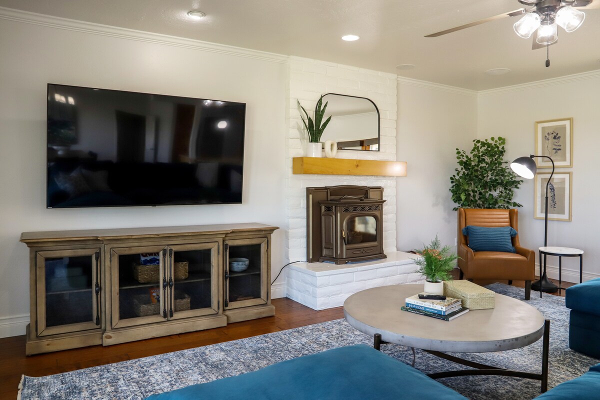 Отпуснете се и се отпуснете в личния си оазис в този наскоро ремонтиран модерен дом от средата на века! Докато влизате в този дом с 3 спални и 2 бани, ще бъдете отвлечени от стилната му архитектура от средата на века и модерния ретро декор, които със сигурност ще ви вдъхновят! Създадохме уютно, стилно и рушветно място, където вие и гостите ви можете да се отпуснете и да се отпуснете в грандиозния заден двор или просто да прекарате деня край уютната камина, докато се наслаждавате на винили!
