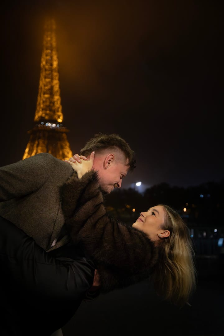 Уловете любовта си в Париж, а Айфеловата кула свети на заден план. Тази романтична фотосесия ще ви остави със спомени, които изглеждат и се чувстват като във филм само този път, че е истинска и е ваша.