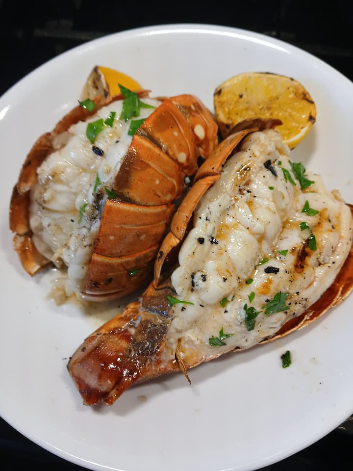 Насладете се на това меню с брускета, домашна салата, броколи, смачкани картофи с чесън и опашка от омар с лимоново масло, плюс сладък финал от пай с лайм.