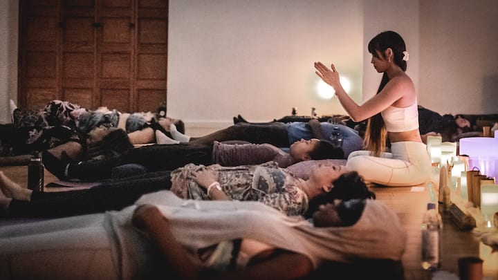 Тази йога сесия включва дихателни упражнения, медитация, соматична терапия и звукова вана. Тази работа е подходяща за начинаещи и напреднали практикуващи.