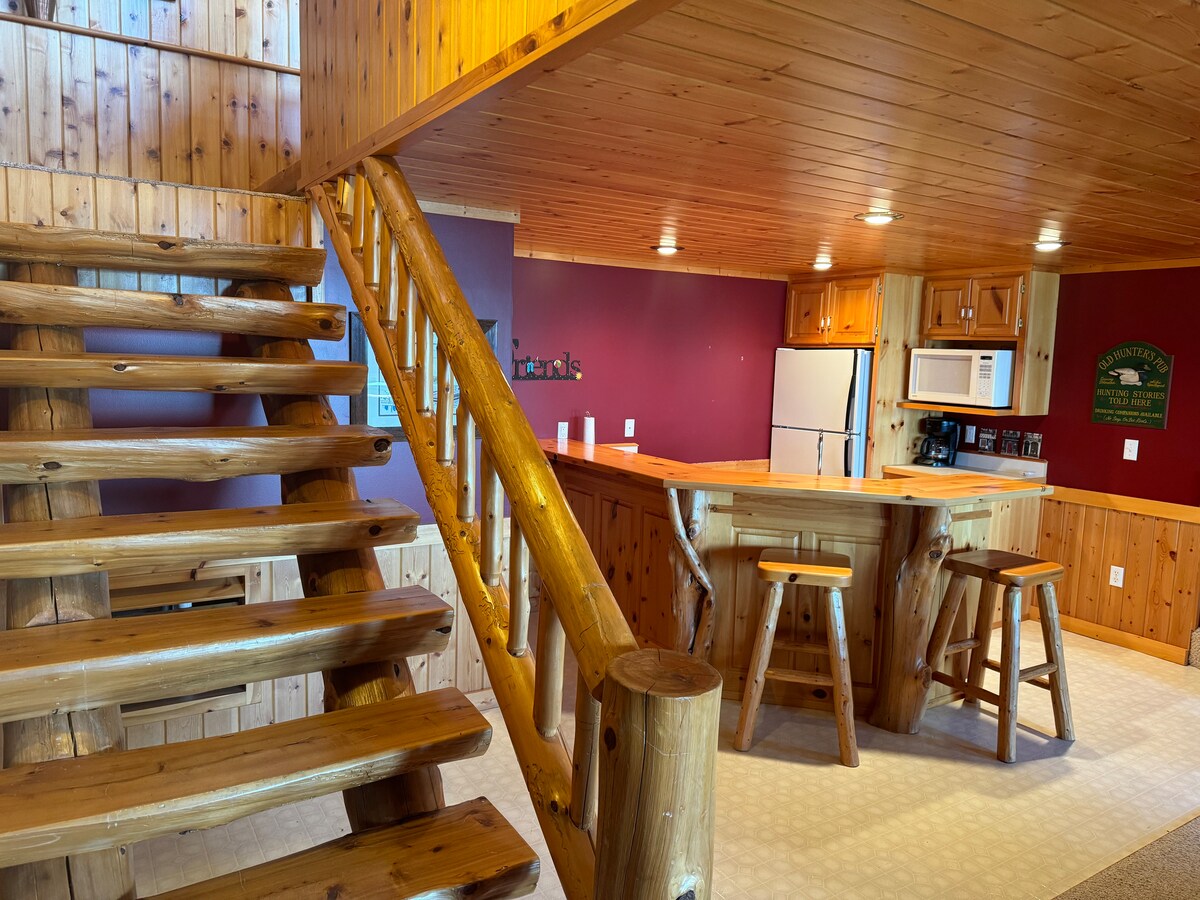 Над 3500 кв. фута дървена колиба, напълно обзаведена с достатъчно място за готвене, хранене, излежаване, събиране, игра, спане и др. Езерото Пийч отсреща! Чисто нови инсталирани климатични/топлинни мини сплит системи! Whipholt Beach е на 1/3 миля надолу по пътя, осигуряващ плаване с лодка/достъп до езеро! Wi - Fi, напълно оборудвана кухня, съдове, уреди, 3 телевизора с плосък екран със стотици филми + интернет! Газова скара. Перфектно място за плаване с лодка, риболов, дейности на закрито и на открито! Моля, без партита или събития.