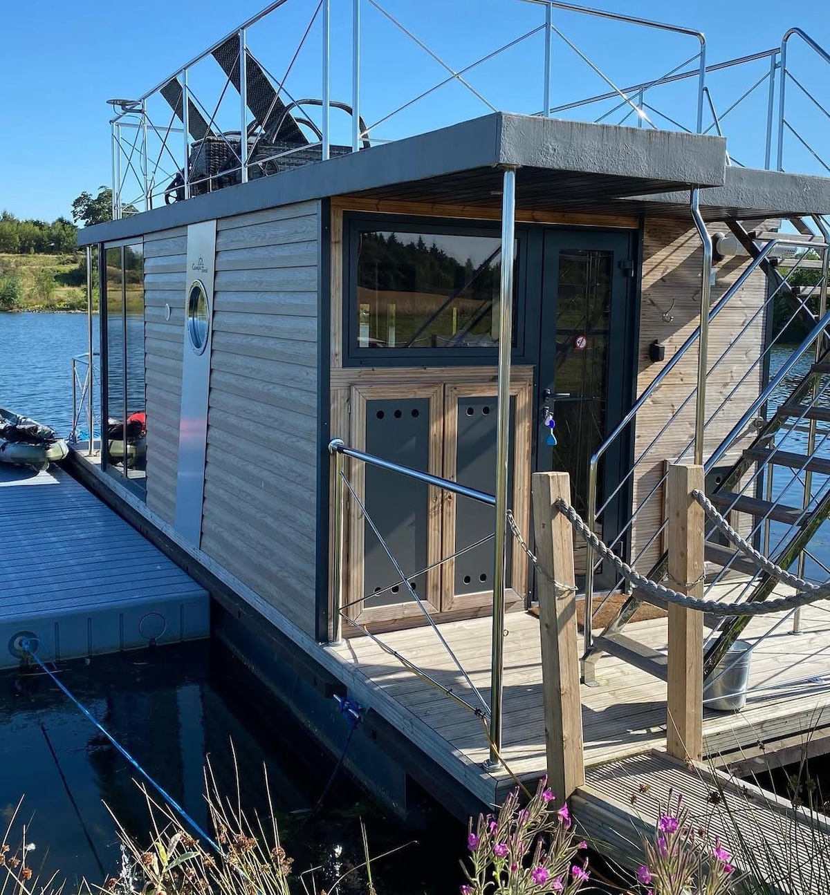 Drift away in this charming floating house designed for a peaceful getaway. Wake up to gentle waves, have breakfast on your private deck, and enjoy panoramic lake views from sunrise to sunset. Perfect for a quiet retreat surrounded by nature’s calm. Highlights: - Private floating deck with outdoor seating - Cozy double bed - Ideal for couples or solo travelers - Steps from the shore and common area